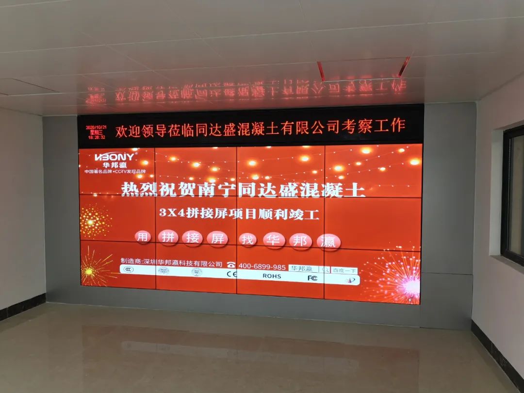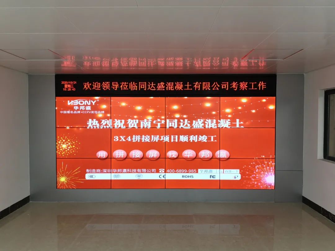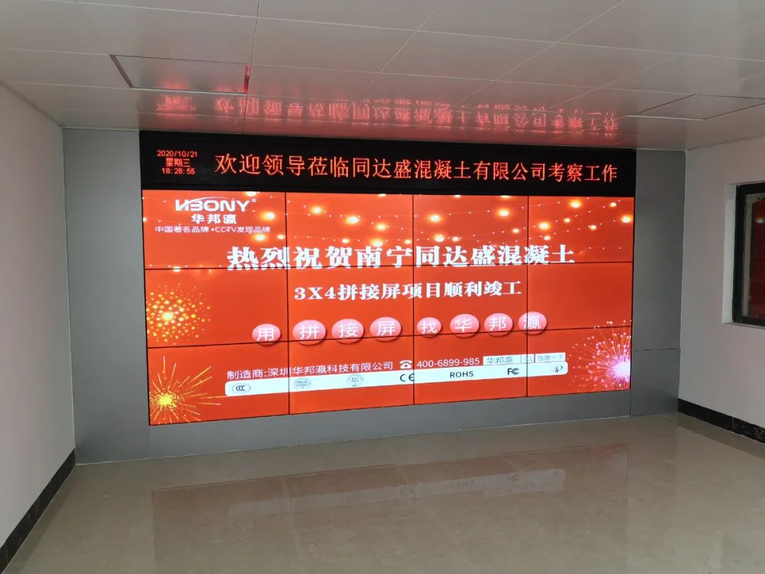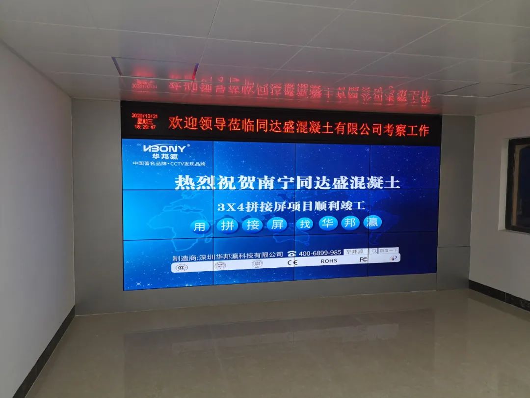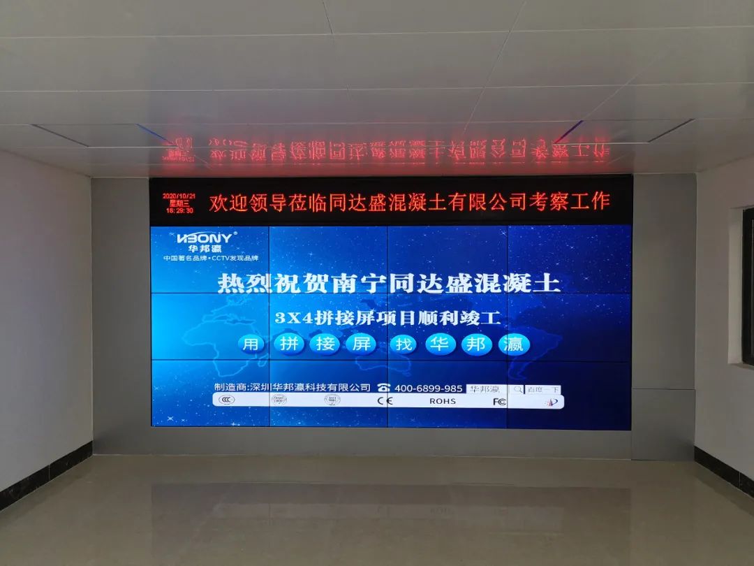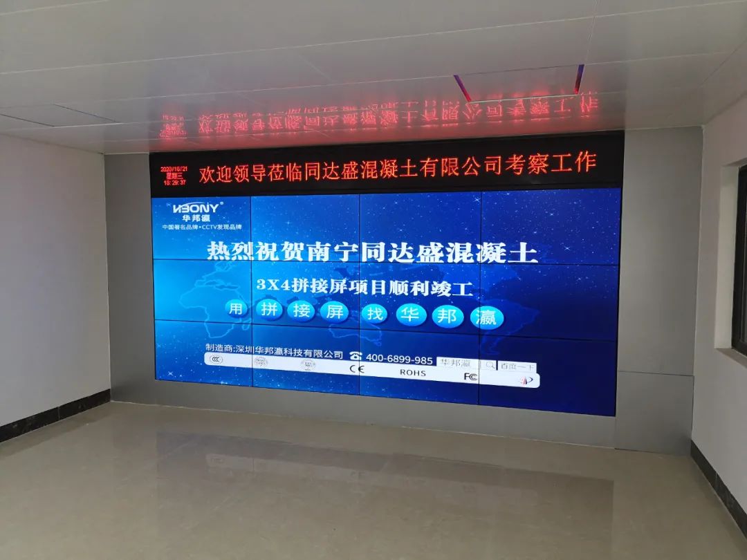 近日,南寧同達(dá)盛混凝土有限公司引進(jìn)華邦瀛液晶拼接屏作為內(nèi)部展廳的終端大屏幕顯示設(shè)備,在提升企業(yè)軟實(shí)力的同時(shí),也為了更好地向來往公司考察的客戶、合作伙伴等介紹相關(guān)的混凝土工程項(xiàng)目案例,展示企業(yè)綜合實(shí)力等,促進(jìn)公司的進(jìn)一步發(fā)展,樹立一個(gè)全新的企業(yè)形象。